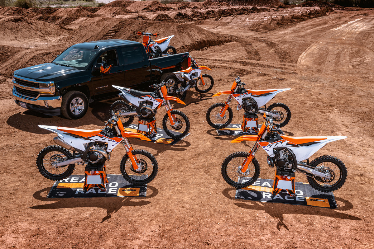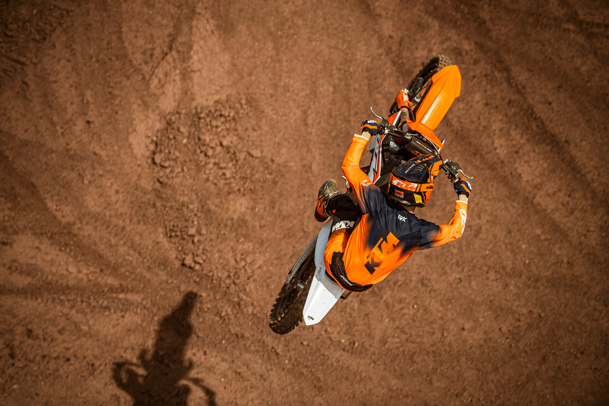 We still have 12 models that scale from electric learner bikes through to two-stroke minicycles (50, 65, 85cc) to larger two-stroke thrillers at 125, 250 and 300cc capacity. The KTM SX-Fs consist of 250, 350 and 450 four-strokes. A potential AMA 450SX winner or MXGP world champion can grow in orange from his or her first metres on the dirt right up until those last few corners as a winner at the very highest level. So, we have the bikes but why jump into the family? Why embrace the KTM DNA? Well, the KTM SXs are the most powerful in each class and have the finest components. They are the most race focused.