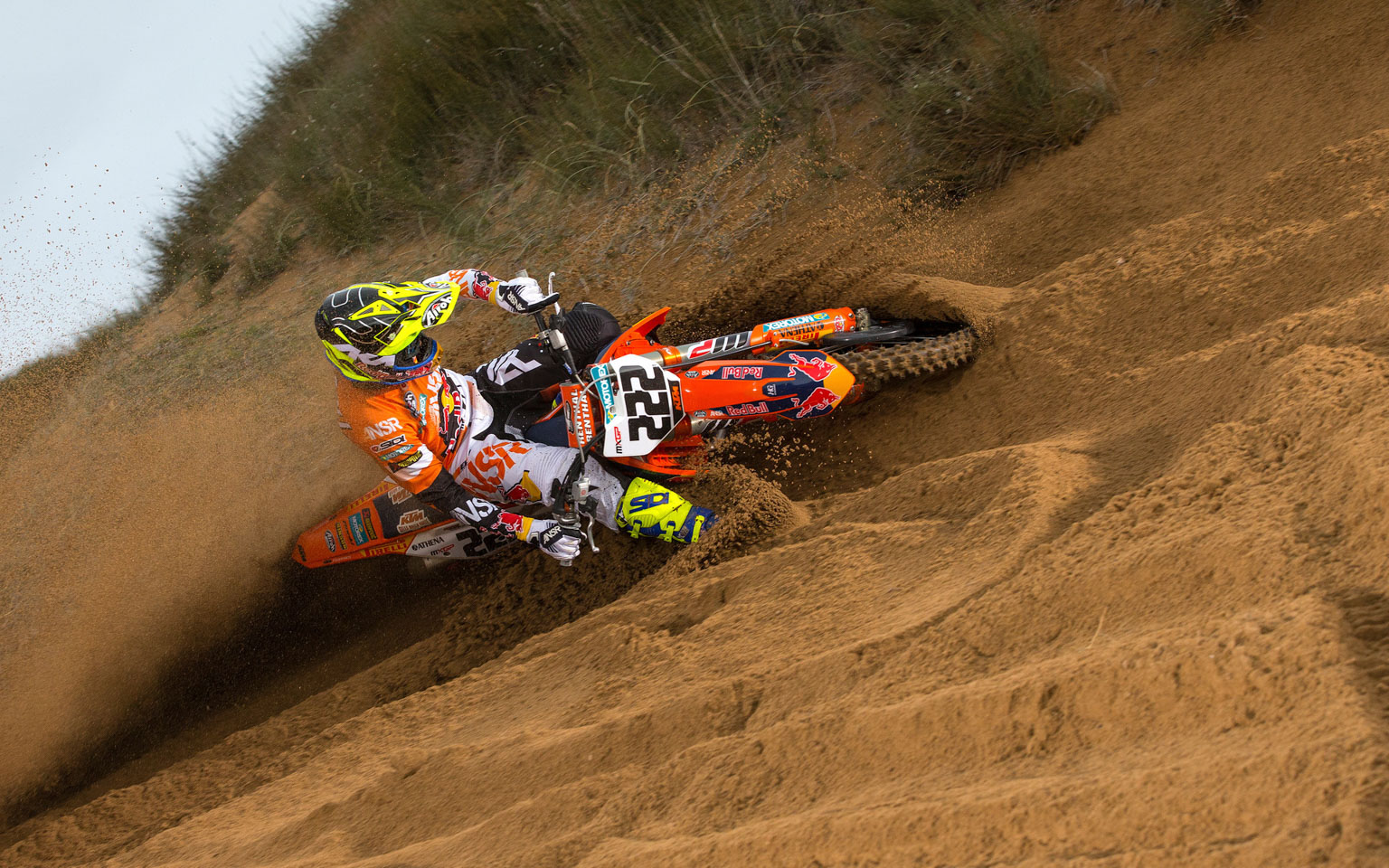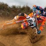 The powerhouse factory KTM team and their 2017 factory bikes have been showcased to the world in a photoshoot in Sardinia, shot by top UK lensman Ray Archer. The 450 riders Jeffrey Herlings, Tony Cairoli, Glenn Coldenhoff were joined by 250 aces Pauls Jonass and Jorge Prado on the seaside track at Riola Sardo. And check out Jeffrey Herlings’ latest buttpatch!
