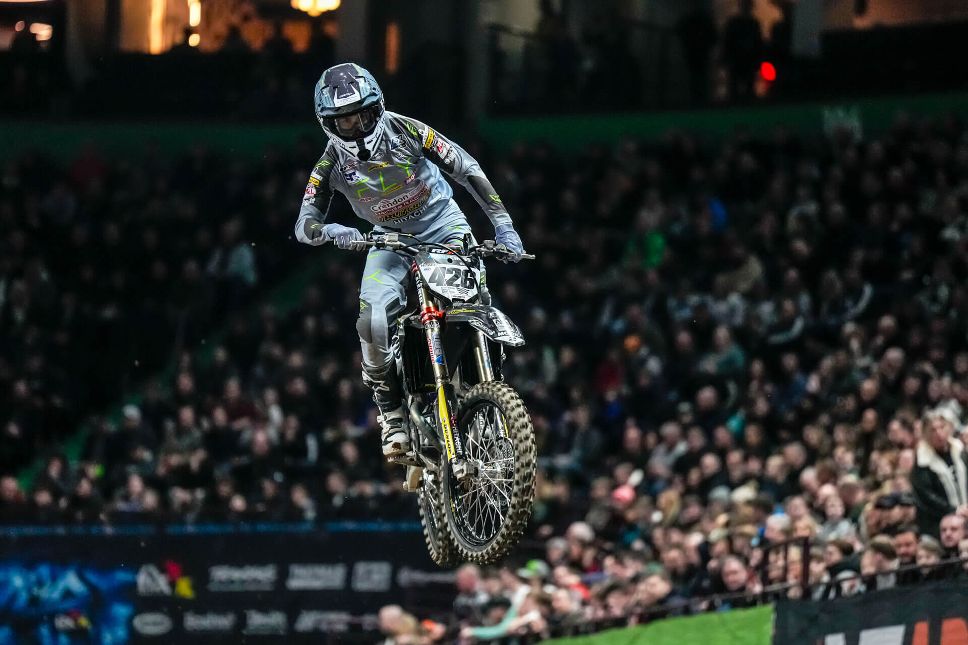 Mewse said: “We were on for a good day, with everything going well. I was winning and was setting fastest laps. But for the final, the bike wouldn’t start. We’ve never had any problems on the Honda before, it’s a freak issue and one of those things. So I went out on a bike that wasn’t even mine! It was brand new and fitted with motocross suspension so it was too soft for Arenacross and felt strange. But I salvaged fourth and it shows how good the standard Honda CRF450R is.
