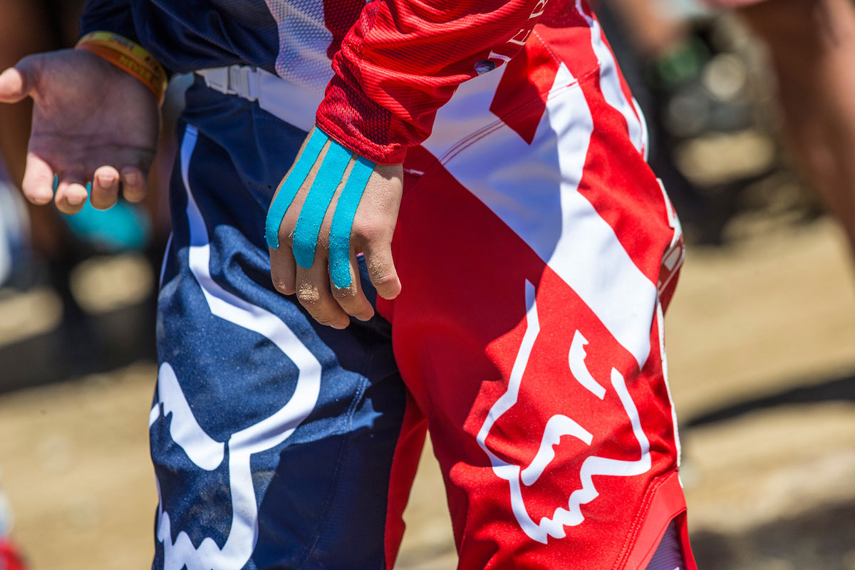 Chiodi stands out through a form of treatment that has become more and more prevalent in the MXGP paddock over the last five years. “Taping has been very famous in athletics for over fifteen years so I brought my athletic experience into motocross,” he claims. “Taping here is even more effective because it deals with the impact, the movement as well as the muscular contraction. When I was travelling in the Far East I learned new techniques and had access to new materials.”