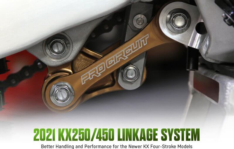 Pro Circuit has released a new linkage system for the 2021 KX250 and 2019-2021 KX450 that brings the bike’s handling performance to an entirely new level. The stock OEM linkage system for these newer models tends to be harsh and stiff at the beginning of the stroke and gets softer as the rear wheel goes deeper into the stroke. With our new linkage system, it’s the complete opposite.