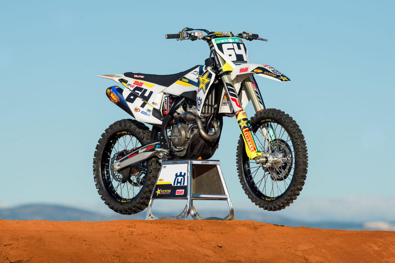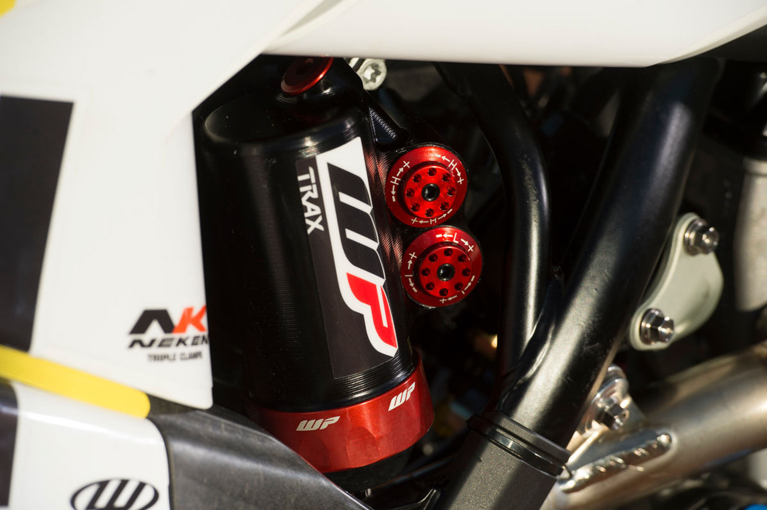 Unlike the 450 with a new engine, it appears the twin-cam 250 motor is still based on the current engine, although the engine cases do have a different external finish. The frame remains a chromoly steel unit but it looks to have been altered around the mid section, and there are new motor mounts. The shock is also totally new. The Rockstar bikes feature a factory-style shock which is similar to the factory units on the 450s. As the 450 Factory Edition bikes have new shocks with adjusters off to one side, it’s likely the new 2018 250s will too.