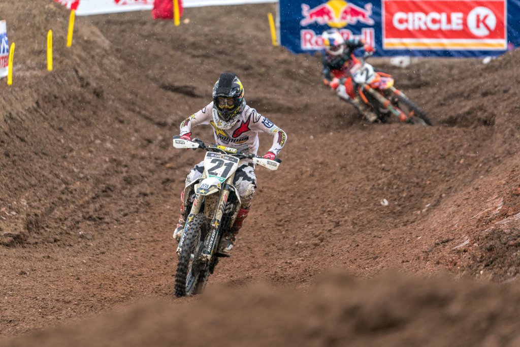 Webb, who led the opening moto until Roczen came steaming past, held on for third in the opener when Anderson also worked his way forward. The Supercross champ Webb had a tougher time in moto two but took sixth. Musquin was sixth overall with seventh then a better fourth place in the tough conditions.