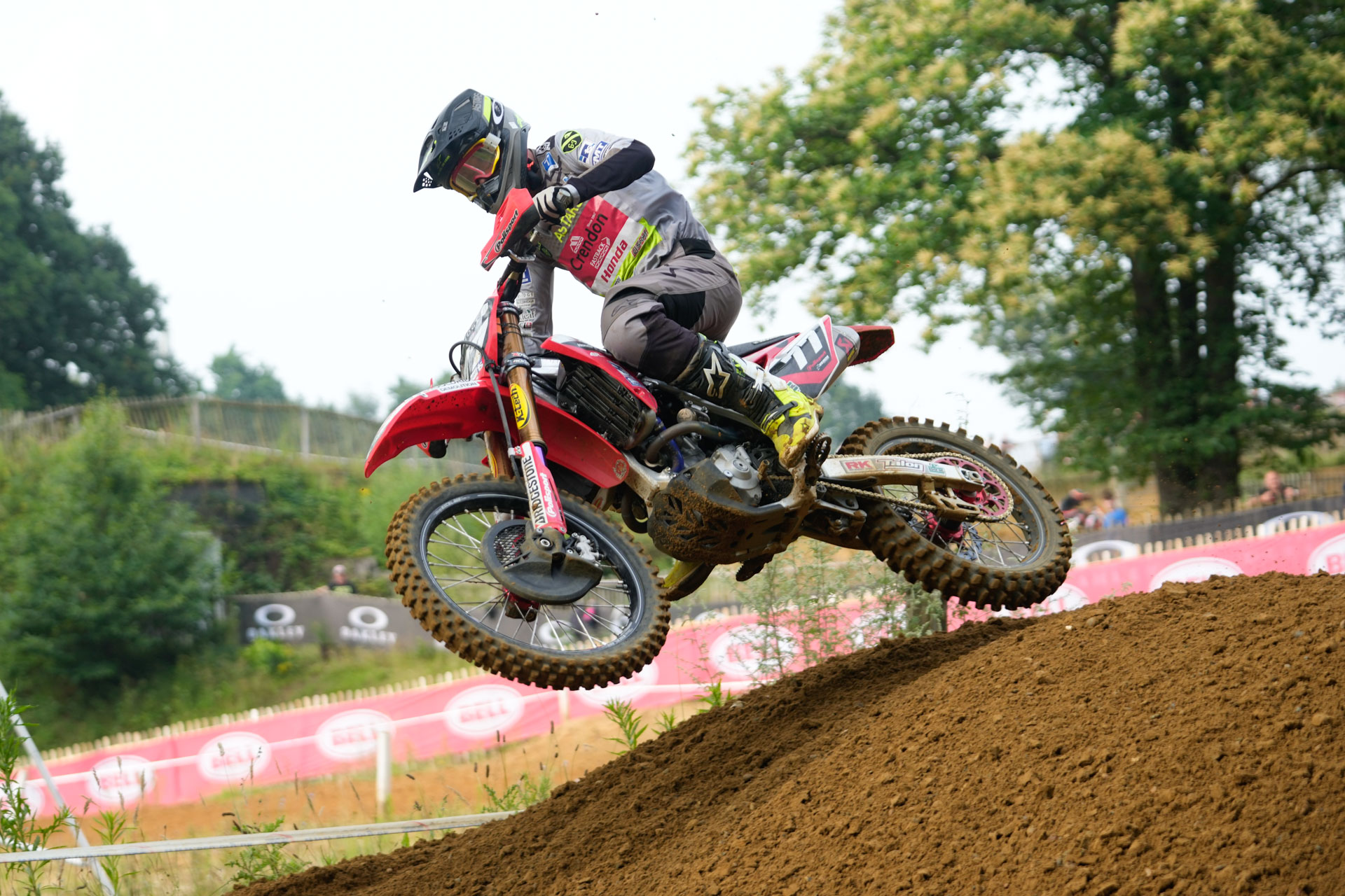 In the first moto on day two Hague had to stop on the first lap when after he banged bars which moved his handguard. He got back going last then was brought down in a clash with another rider. After disentangling the bikes, he put on a determined ride from the back of the pack to take a well-deserved seventh place. Then in the final moto he mastered the tough conditions with an incredible ride. He was leading the MX2 class when he tangled with a 450 rider. He got going again in second place which is where he finished, less than three seconds off his first win of the year. But it was enough to give him third overall.