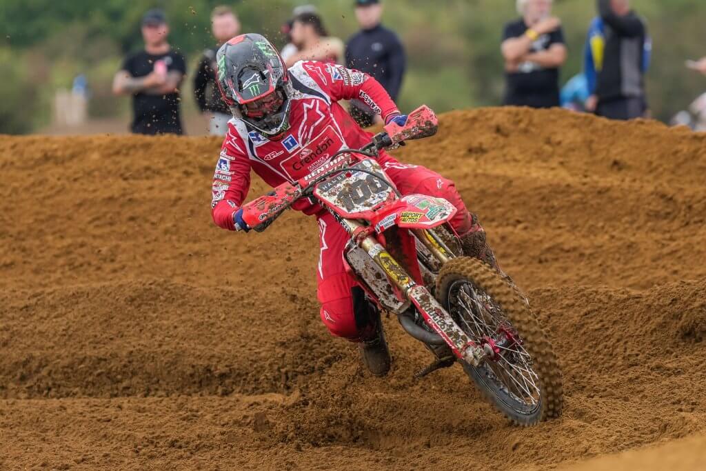 Searle said: “I felt OK but struggled a bit to set up the bike, as this is a real GP-style track that we don’t normally ride on in the UK, with some big jumps and hard hits. The made the track a bit tricky so didn’t want to take too many risks – I was just doing what I needed to do. I was looking after myself as I have the British championship final next week then the Motocross of Nations at Red Bud for Team GB.