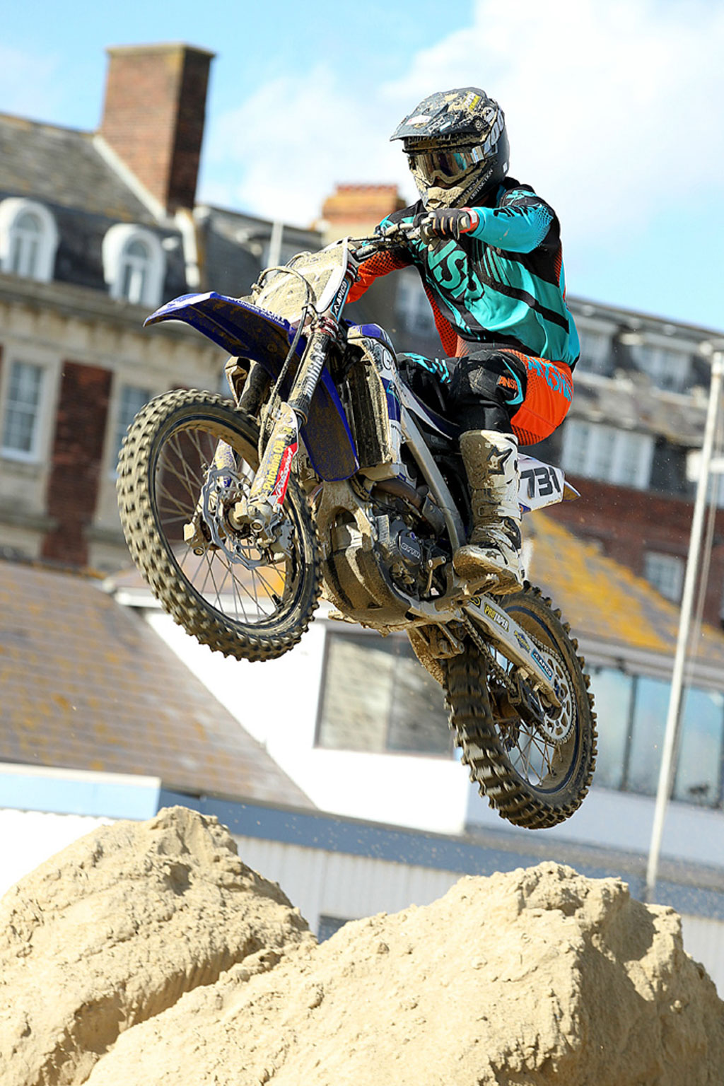 Making his debut for the Geartec Crescent Yamaha team after swopping from KTM, local Maxxis British Championship ace Jake Shipton dominated the Experts class in the annual AMCA Weymouth Beach race. Shipton started the Poole Motorcycles-sponsored Experts class as favourite. However it was to be James Dodd on the FUS Moto4 Fro Husqvarna who grabbed a glorious moto one holeshot and thus lead the charge to turn one. With Shipton down in 5th, the battle appeared well and truly on!