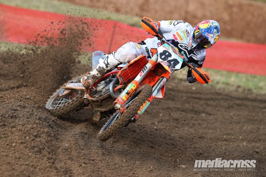 | Heading into Sunday morning at the sunny circuit, we saw the return of a full paddock of spectators as our MX2 rider John Adamson rider headed out for his qualifying session, and Instantly showing speed and smoothness, placing himself in ninth behind a line up of MXGP Contenders. Race one for John saw him grab a decent start and push his way through the pack into seventh, just before coming together with another rider, clipping the fence which saw him drop down to eleventh, but still grabbing a great result. Moto two for the MX2 rider, John grabbed a great holeshot ahead of the rest of the pack, and continued to lead for the opening three laps of the race just before dropping down to fourth, as his rear wheel clipped the fence but he still managed to finish a respective P7, settling for a ninth overall scorecard for the day. |