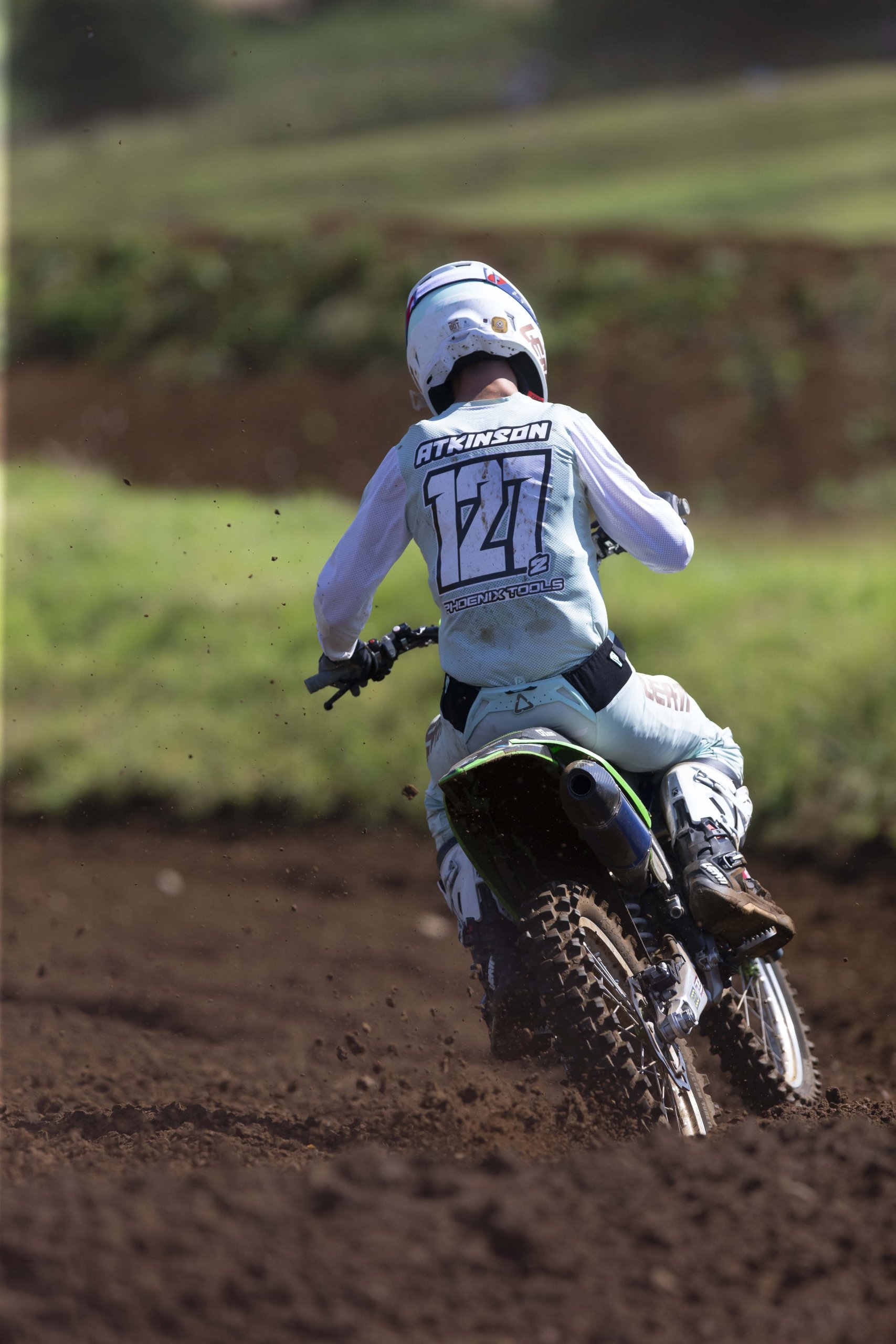 Sam Atkinson won the first three of the amateur MX2’s, but a mid-pack start robbed him of a clean sweep of win’s, but with those three wins’ he still took the overall class win. Race four winner Alfie Jones was second, with Rory Jones third.