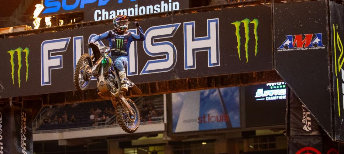 | Eli Tomac took his first win of the season, and his first since returning from his 2023 Achilles injury, with 1-1-1 Race scores at the St. Louis Triple Crown Supercross. With the win at Round 12, Tomac became the sixth different rider to win in this highly competitive season. |
