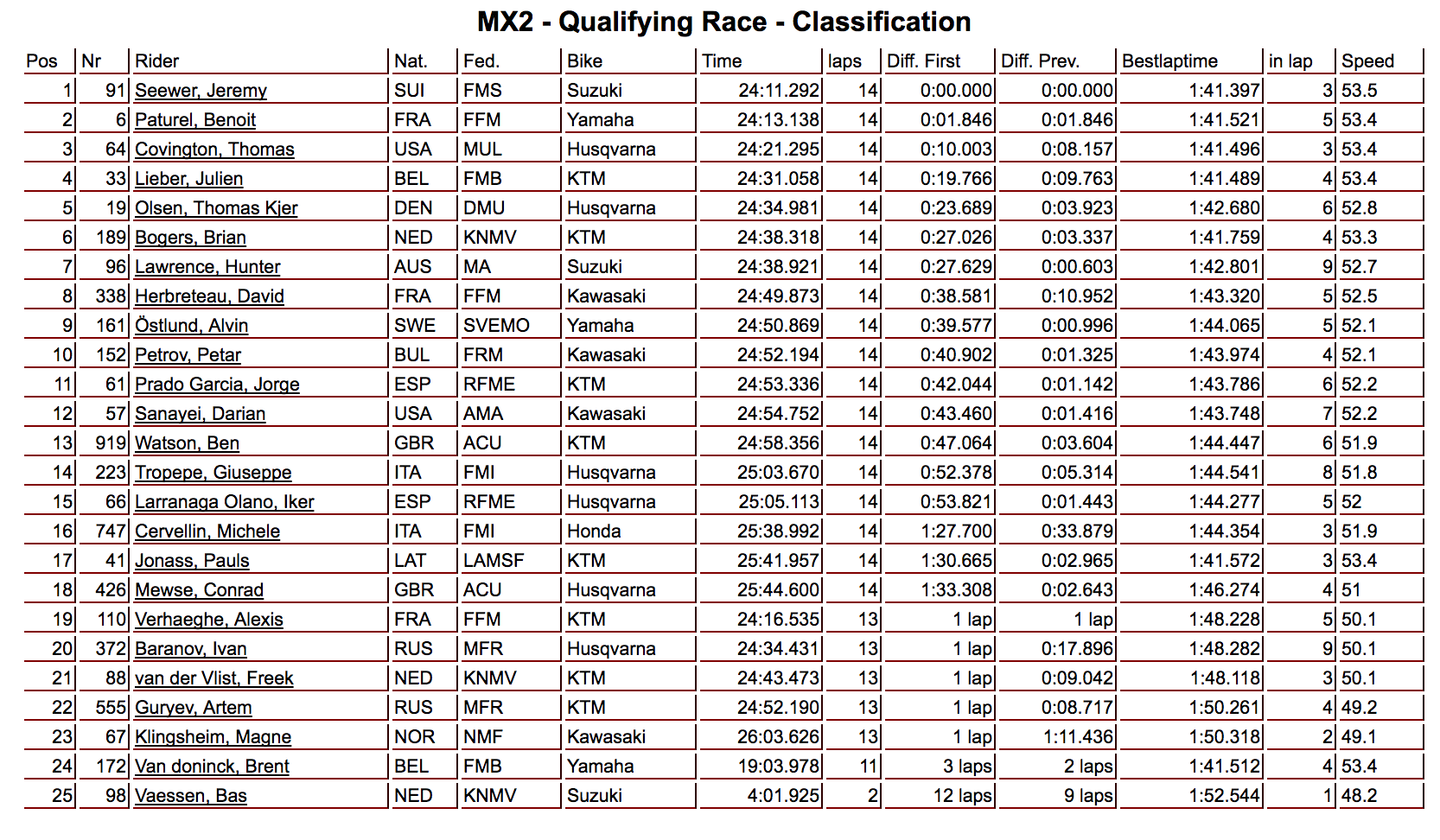 Nagl wasn’t the only man to make mistake as Jeremy Van Horebeek went down in the first turn and retired with a sore hand, Max Anstie went off the track and Evgeny Bobryshev also went down.