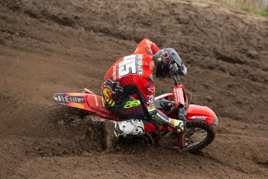 Desparate to make amends and claw back vital points, Carless then led the final MX1 clash all the way to the finish after passing holeshot king Crowder. With Burton, struggling for clear vision in the rain and suffering a fall early on which dropped him down to 6th, the Champion elect decided to settle for a safe 2nd. Finishing their respective performances off in style, the smooth Crowder was again to take 3rd ahead of Harris, Gibson and Ridgway, all right in the mix and fighting hard. In this moto, Brandon Benjamin enjoyed his own best ride of the day, getting it home in 7th.