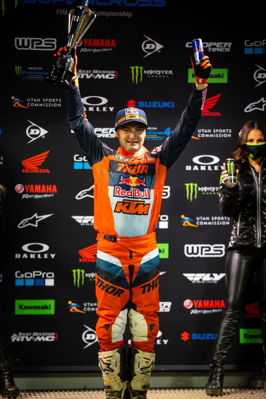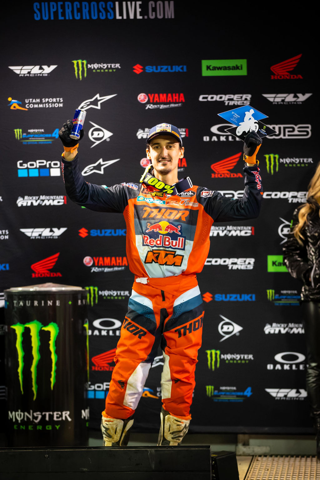Webb: “This one is huge, back-to-back wins is amazing! It was a great race battling with AC [Cianciarulo] and great points for tonight. Marvin was riding great. I knew he was coming there at the end and I know how strong he is because we ride and train together every day. I felt like start to finish I was in my comfort zone just clicking laps away and it felt really good. KTM going one and two is incredible, this is an awesome feeling.”