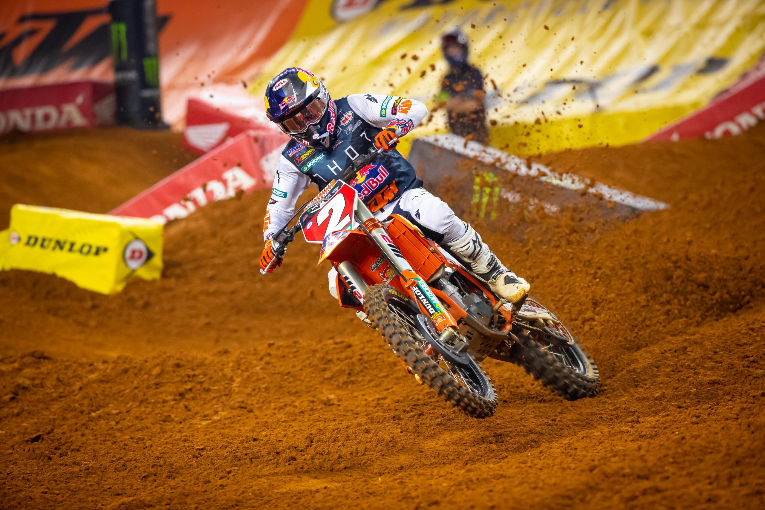 KTM’s Marvin Musquin did not line up on after suffering a hard crash during his heat race on Saturday. The French rider received stitches immediately after the race and doctors later confirmed that he did not sustain any broken bones; however, due to the quick turnaround in the series schedule, Musquin was not cleared to race. Upon clearance from the medical staff, Musquin looks to make a return on Saturday for the final round of racing in Arlington, Texas.